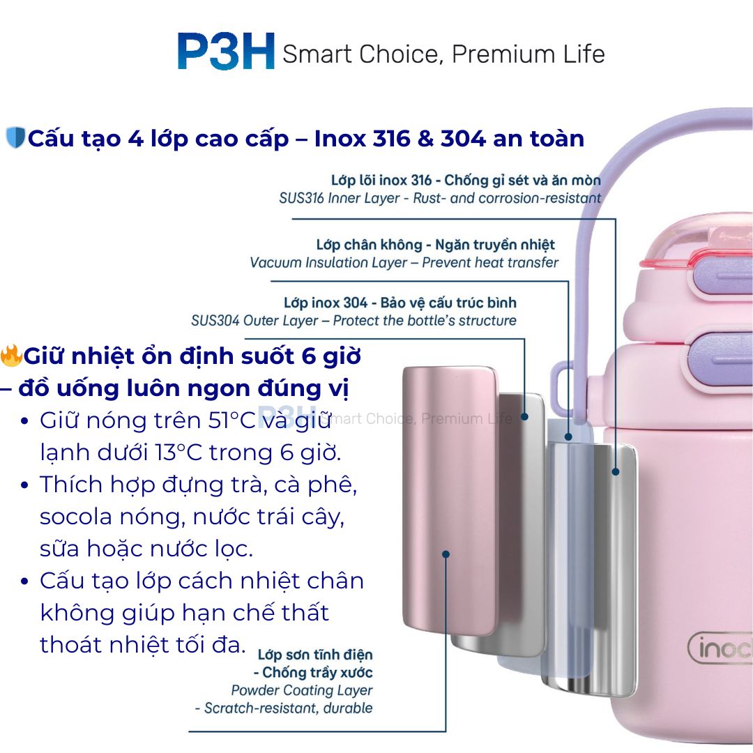 🛡️ 2. Cấu tạo 4 lớp cao cấp – Inox 316 & 304 an toàn