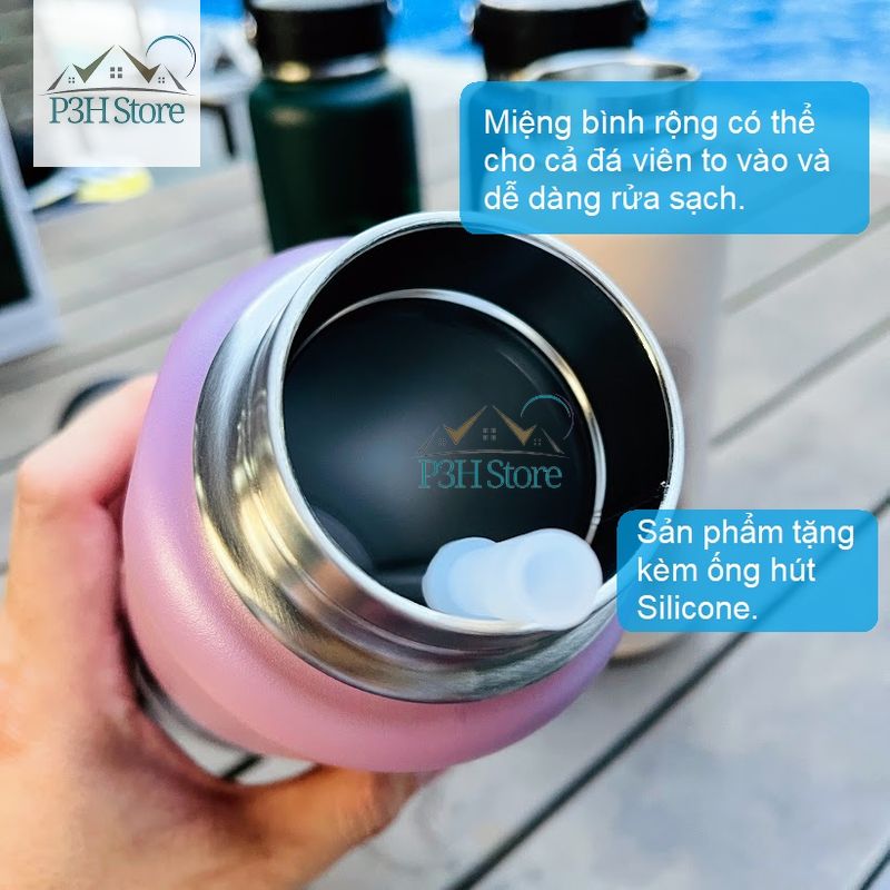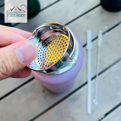 - Chất liệu thép không gỉ , nắp nhựa , ống hút silicone đi kèm.