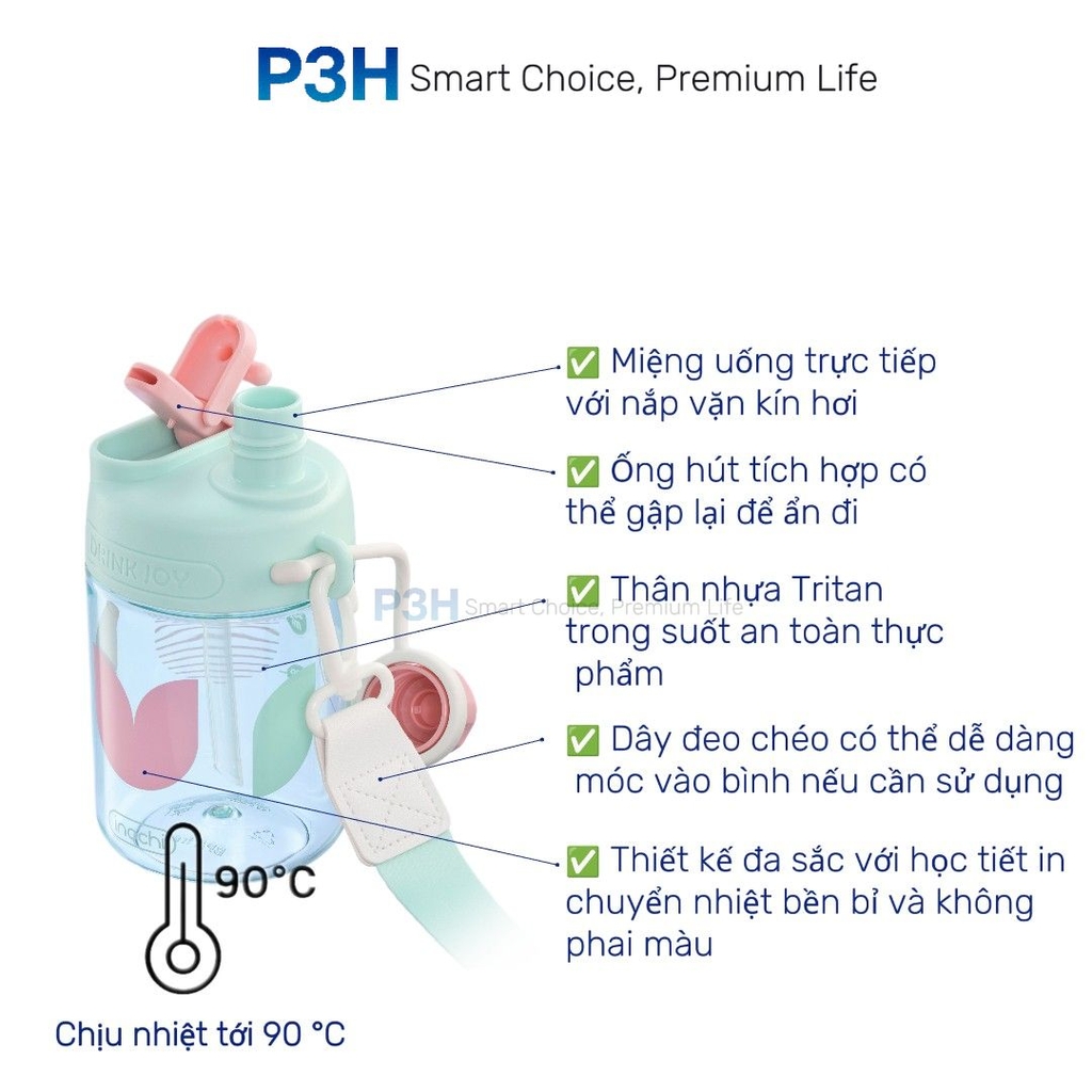 ✅ Chất liệu an toàn: Thân bình được làm từ nhựa Tritan trong suốt, không chứa BPA, chịu lực tốt và hoàn toàn an toàn cho sức khỏe.