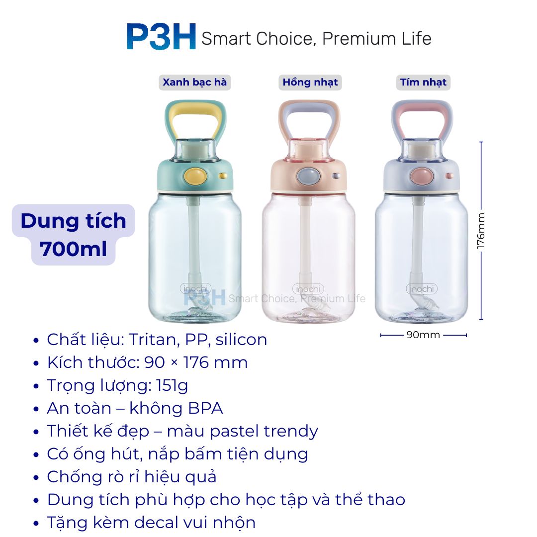 Bình Nước Tritan Kita Gummy 700ml – Kèm Decal Trang Trí, Thiết Kế Trẻ Trung, Tiện Lợi Mọi Lúc P3H