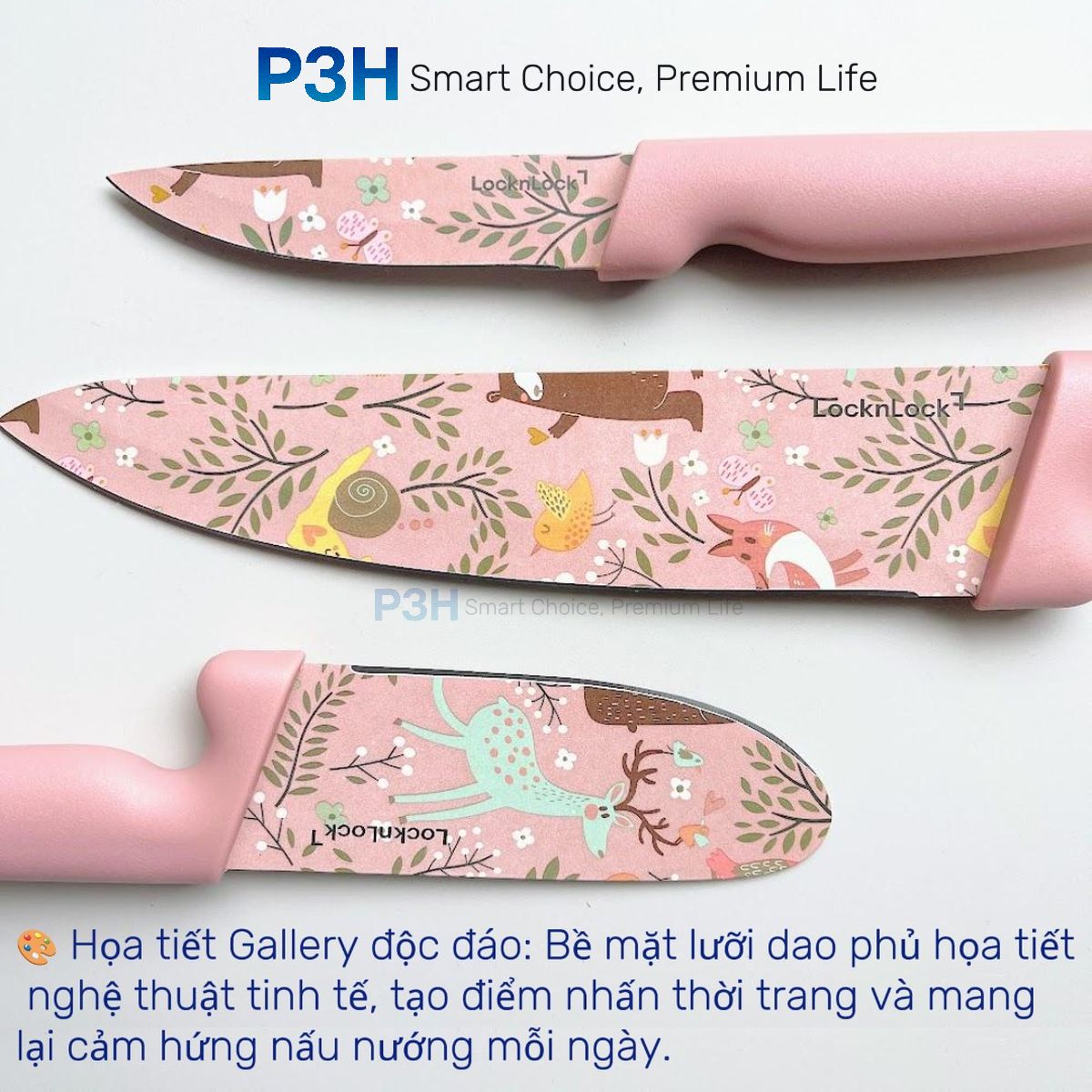 Bộ Dao Nhà Bếp 3 Món Lock&Lock Gallery CKK308S3 Họa Tiết Nghệ Thuật, Màu Hồng Pastel P3H Store