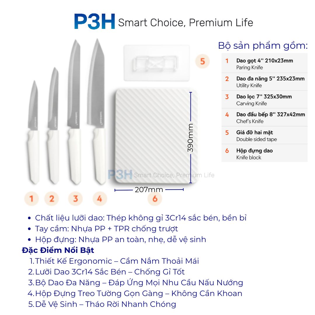 Bộ dao nhà bếp LocknLock CKK307S5 là lựa chọn hoàn hảo cho căn bếp hiện đại nhờ thiết kế gọn gàng, sang trọng và đặc biệt là hộp đựng dao treo tường không cần khoan. Sản phẩm giúp bạn tối ưu diện tích bếp, giữ dao luôn sạch sẽ, khô ráo và an toàn khi sử dụng.