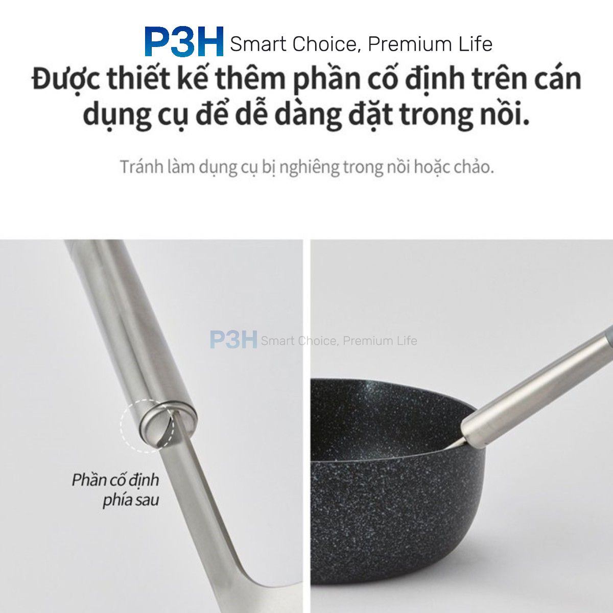 - Đầu dụng cụ: Silicone thực phẩm cao cấp, chịu nhiệt tốt, không làm trầy xước bề mặt nồi/chảo chống dính.