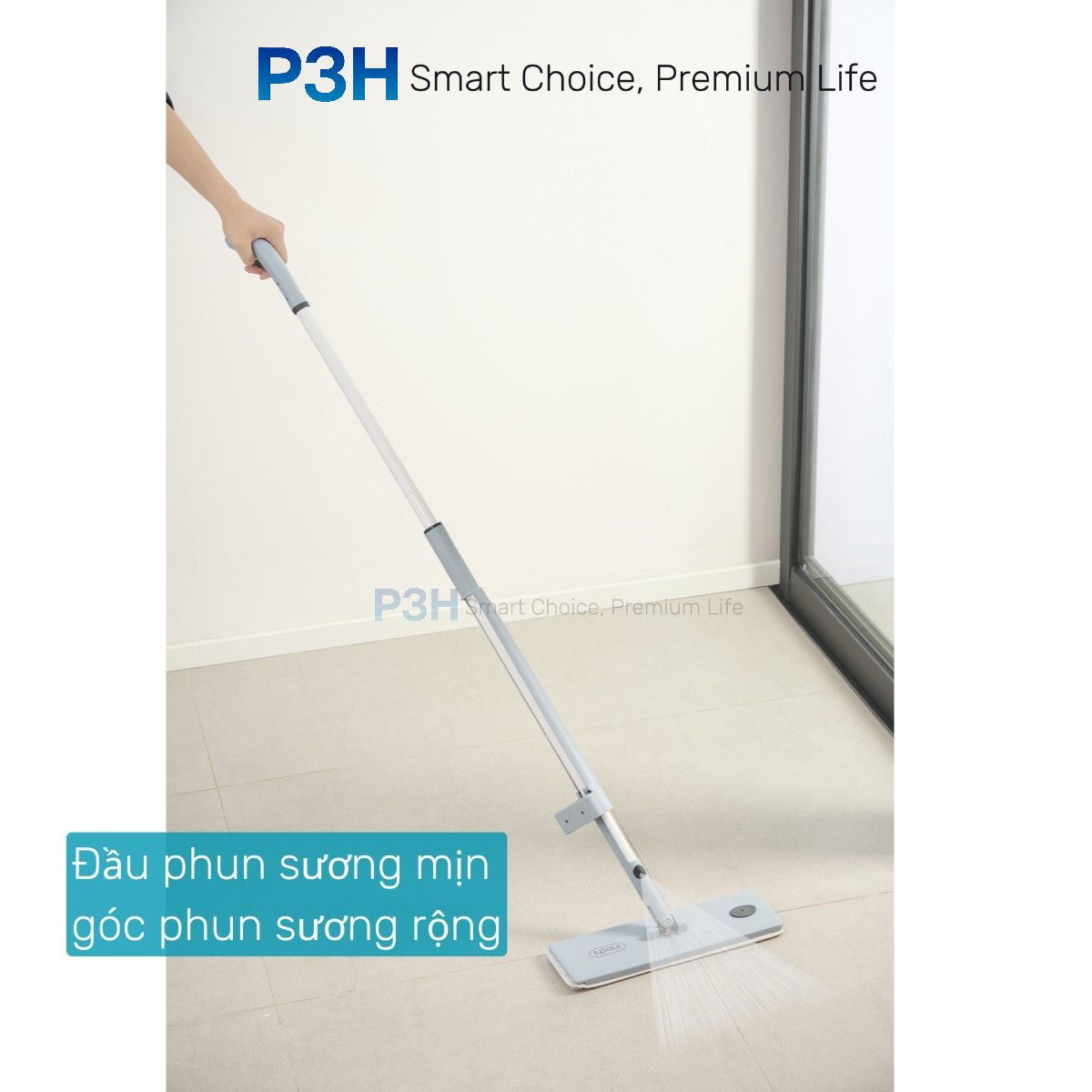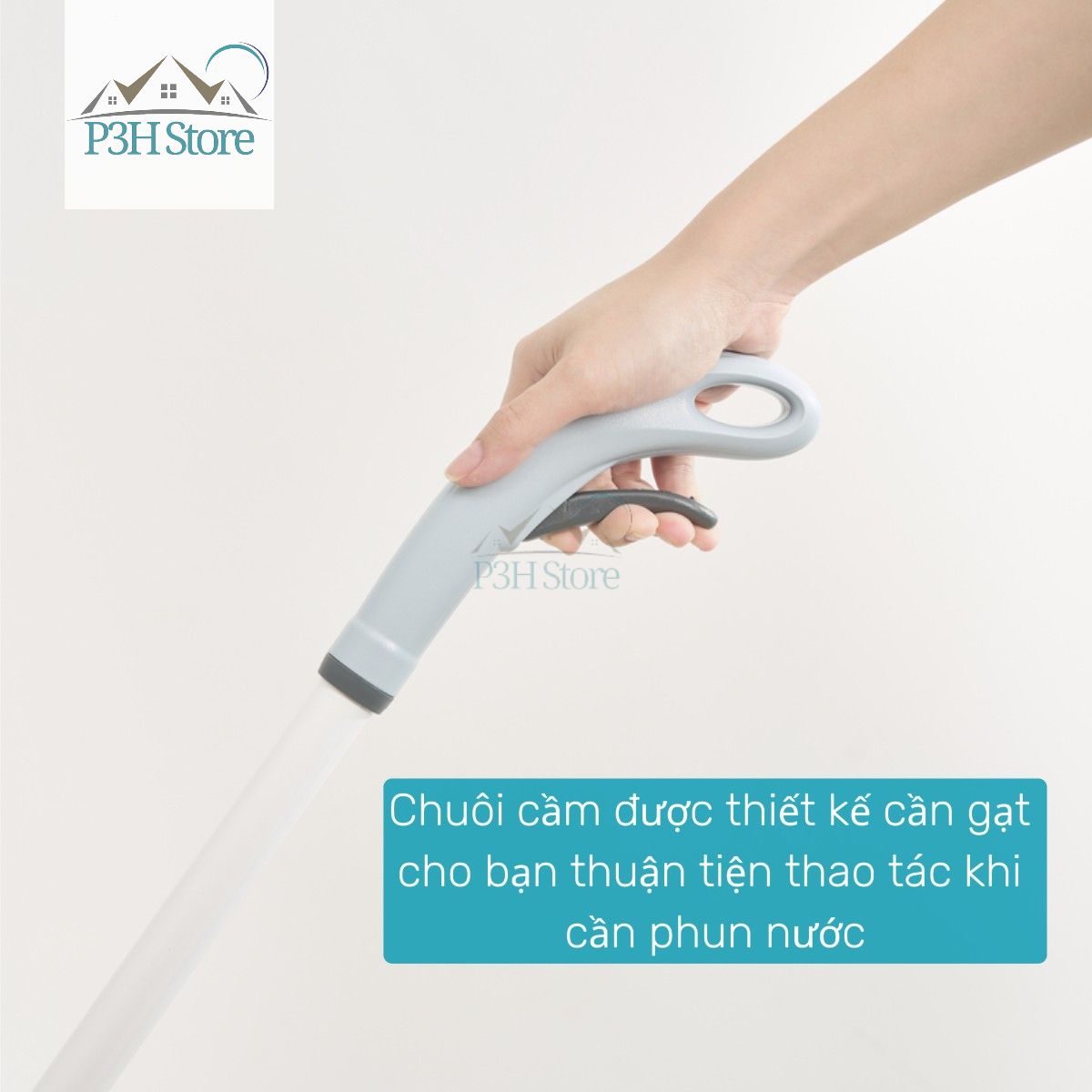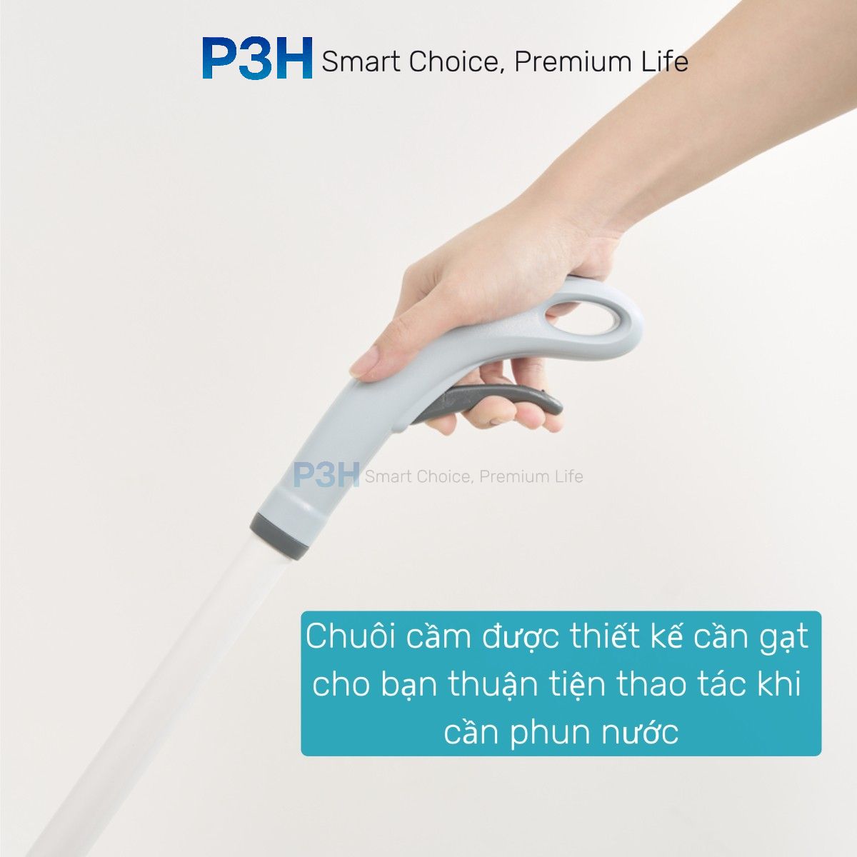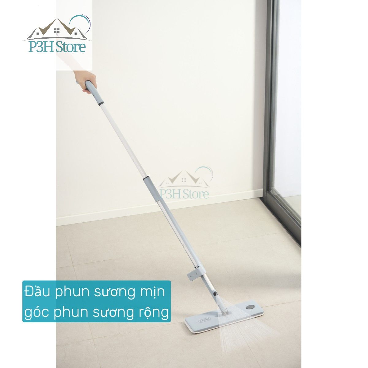 Chuôi cầm được thiết kế cần gạt cho bạn thuận tiện thao tác khi cần phun nước, chỉ cần bóp nhẹ là nước sẽ được phun ra dưới dạng sương với góc phun rộng, giúp bạn dễ dàng lau dọn và làm sạch cả những mặt sàn rộng một cách tiện lợi và nhanh chóng mà không làm xước bề mặt sàn, không để lại lông sợi trên sàn.