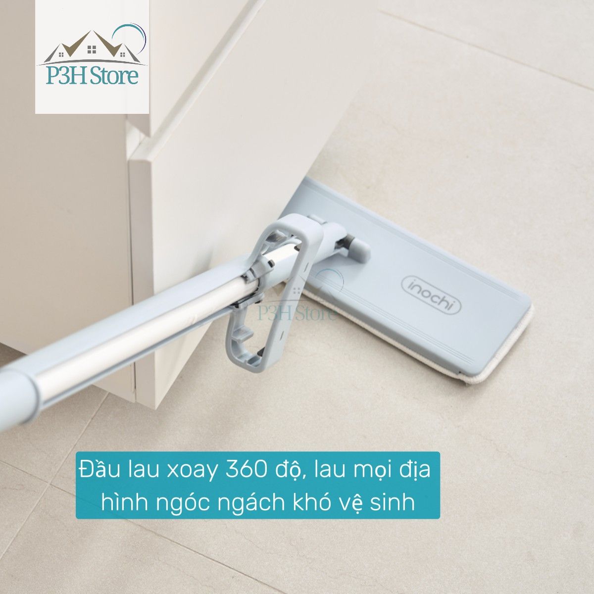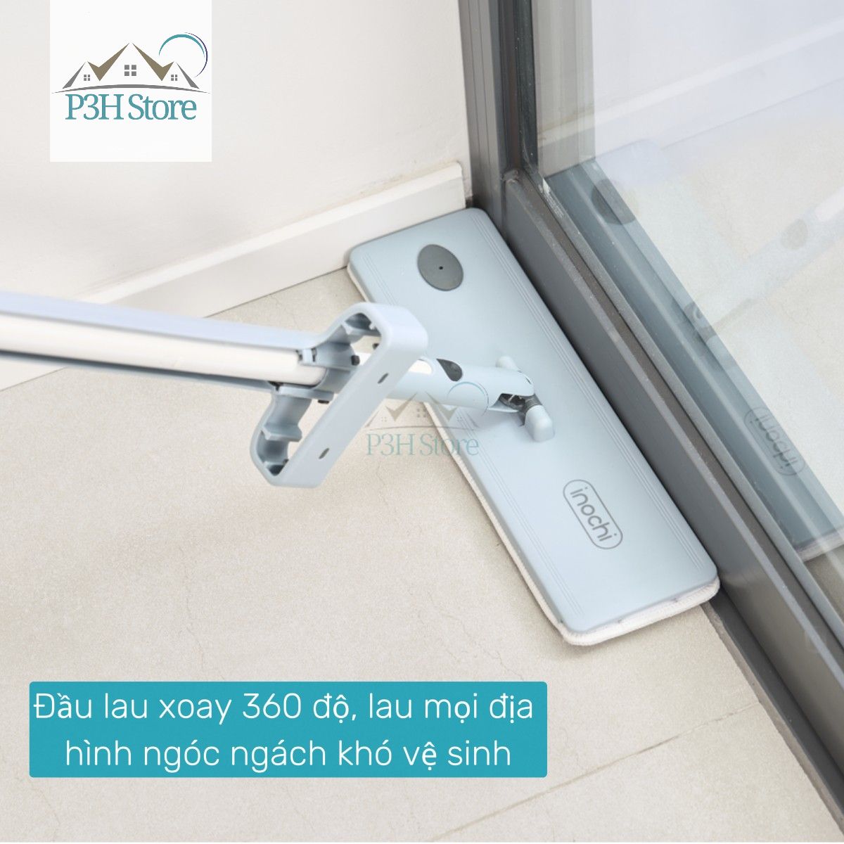 - Đầu lau xoay 360 độ, lau mọi địa hình ngóc ngách khó vệ sinh