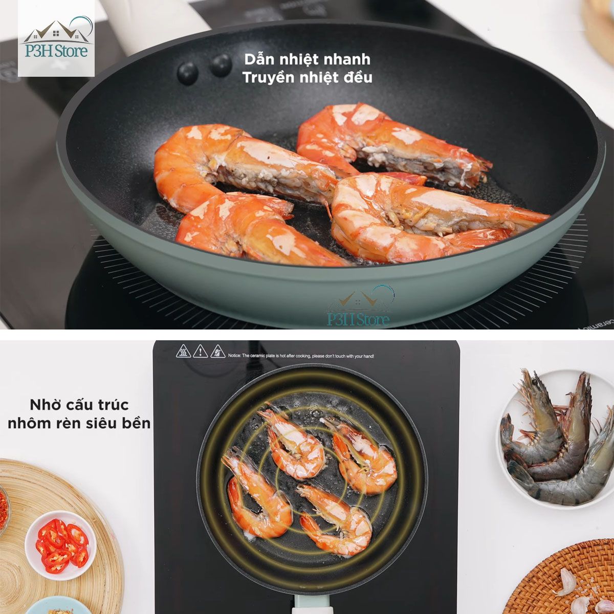 - Dẫn nhiệt nhanh, truyền nhiệt đều nhờ cấu trúc nhôm bền bỉ bên trong