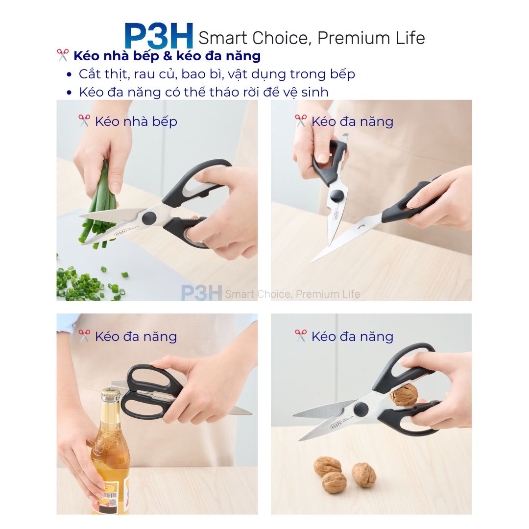 ✅Kéo: Trong bếp, kéo đa năng giúp mở nắp chai, cắt vỏ hạt, tháo rời để vệ sinh sạch sẽ, duy trì độ mới lâu dài.