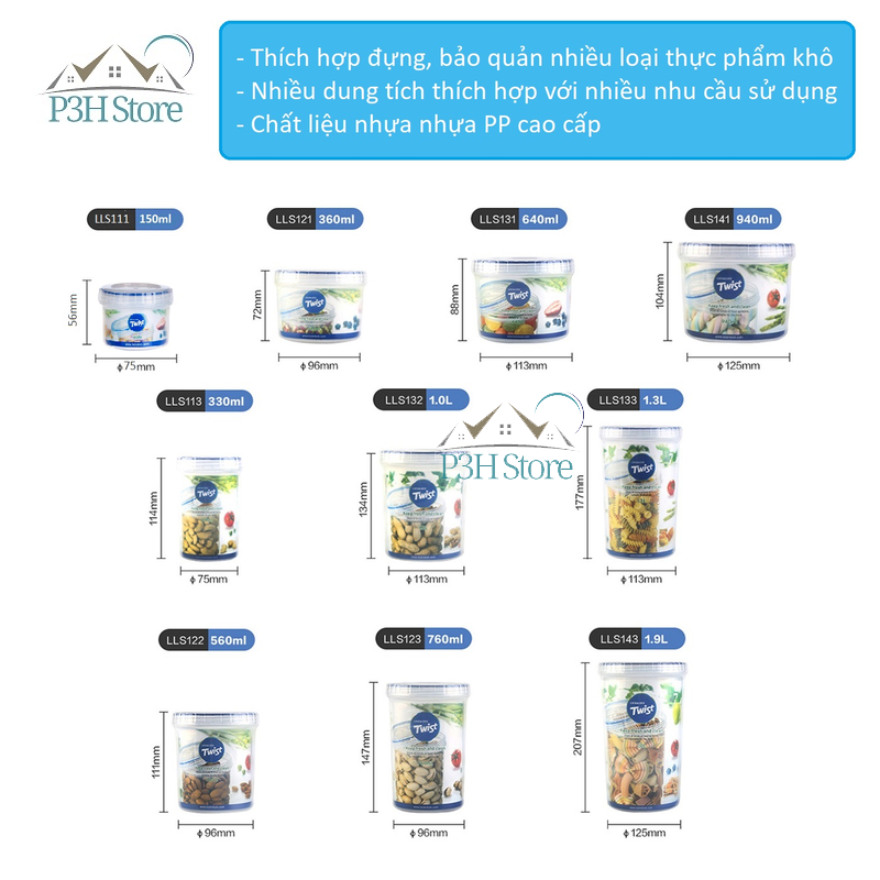 Hộp nhựa nắp vặn Lock&Lock Twist bảo quản thực phẩm nhiều dung tích LLS111 LLS121 LLS131 LLS141 LLS122 LLS113 LLS143