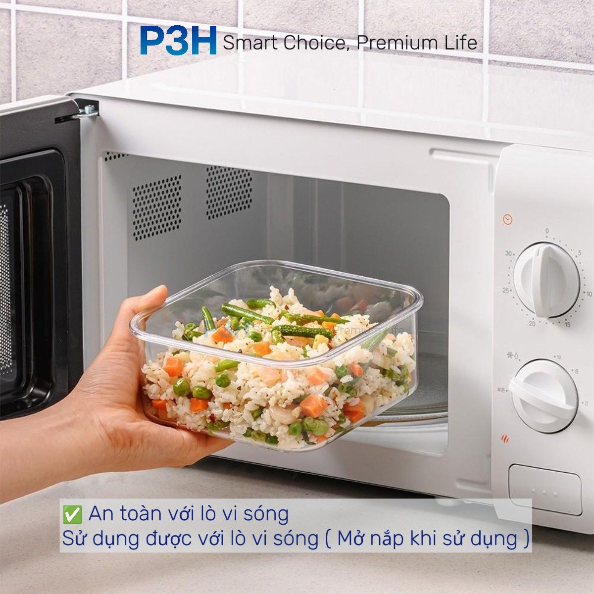 Thân hộp trong suốt, chịu nhiệt từ -40℃ đến 110℃, không chứa BPA, an toàn cho cả lò vi sóng, tủ đông và máy rửa chén (nhớ tháo nắp khi dùng nhiệt cao).