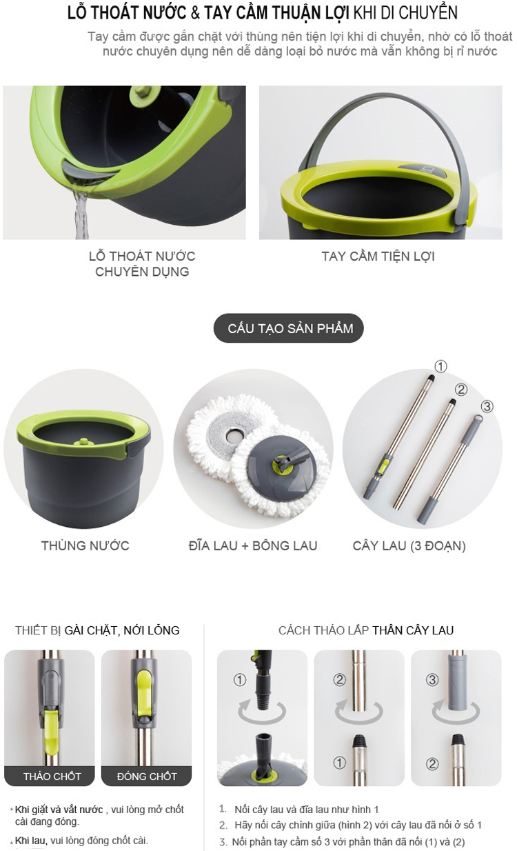 - Bộ gồm 1 thùng chứa nước, 2 bông lau cùng 1 cây lau, sẽ góp phần giúp bạn giữ cho nhà cửa luôn được sạch sẽ và khô thoáng.
