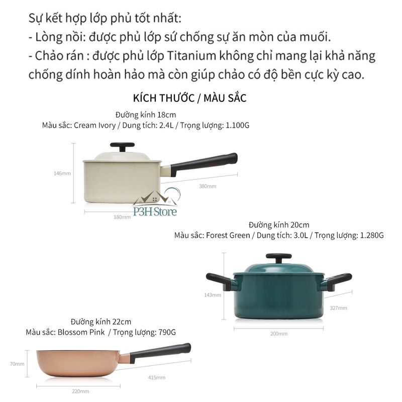 - Sự kết hợp lớp phủ tốt nhất: Lòng nồi: được phủ lớp sứ chống sự ăn mòn của muối. Chảo rán: được phủ lớp Titanium không chỉ mang lại khả năng chống dính hoàn hảo mà còn giúp chảo có độ bền cực kỳ cao.