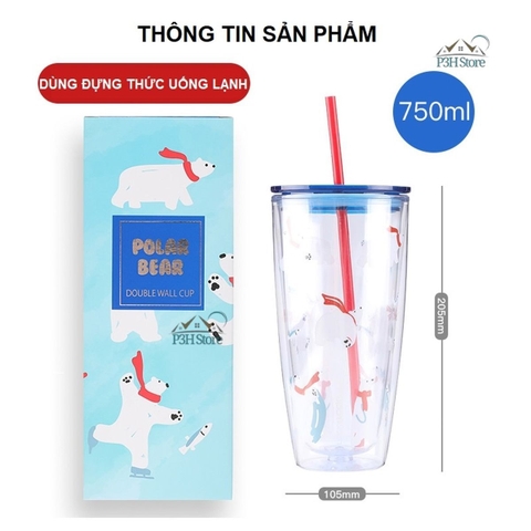 Ly nhựa 2 lớp có ống hút Lock&Lock dung tích 750ml HAP507 HAP509