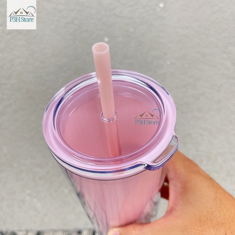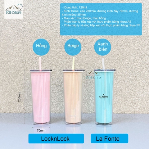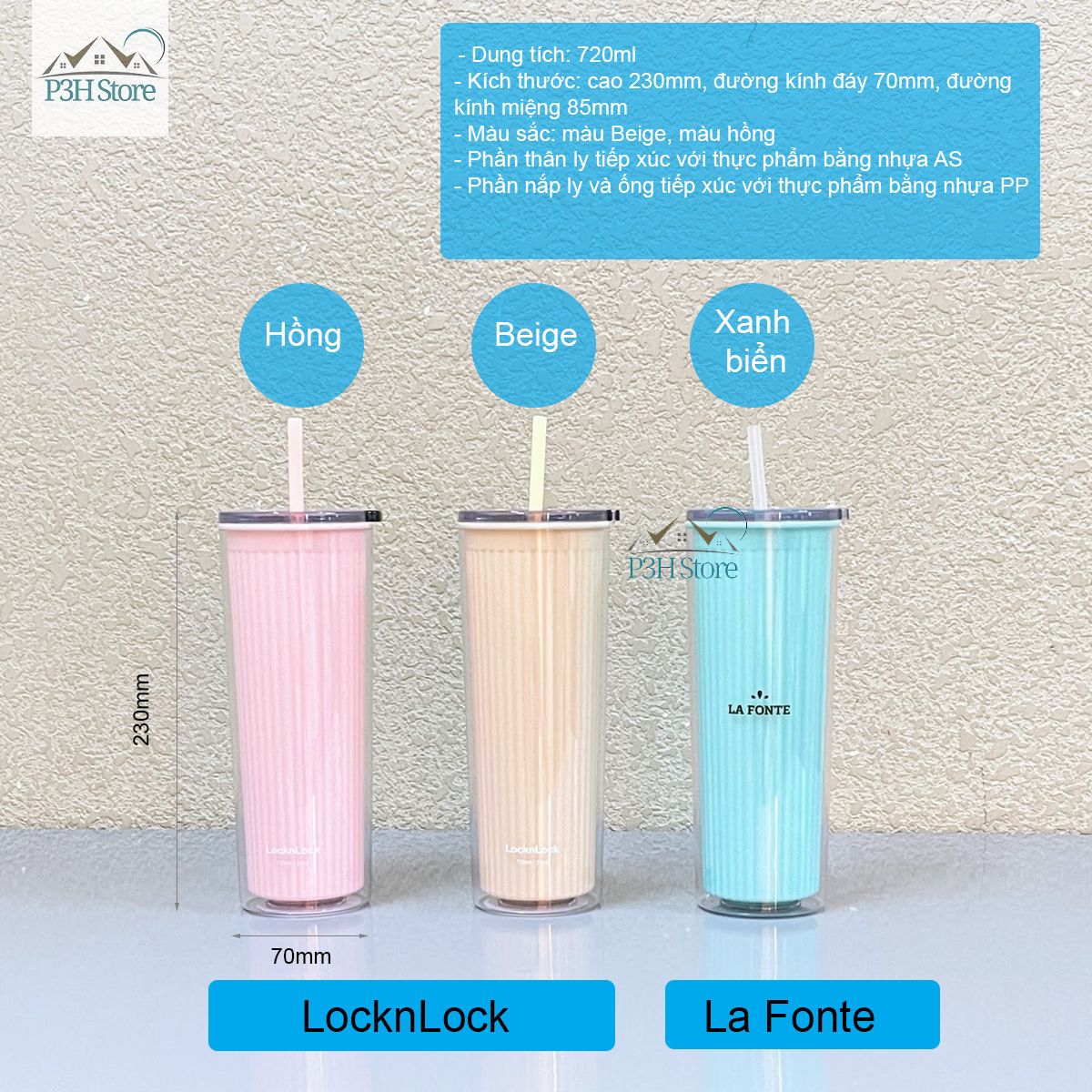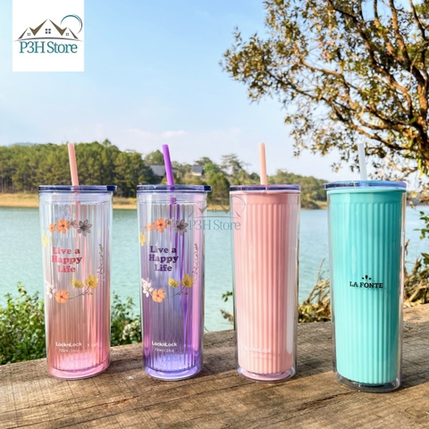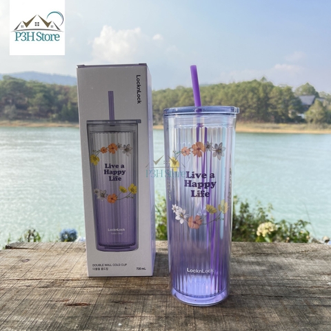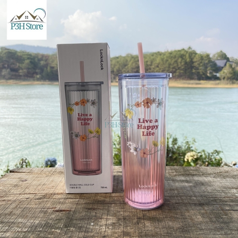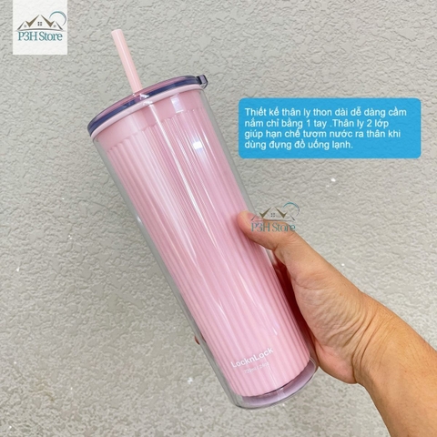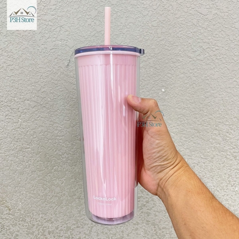 Ly nhựa 2 lớp LocknLock 720ml dạng thân cao dễ dàng cầm nắm bằng 1 tay Cold Cup HAP528