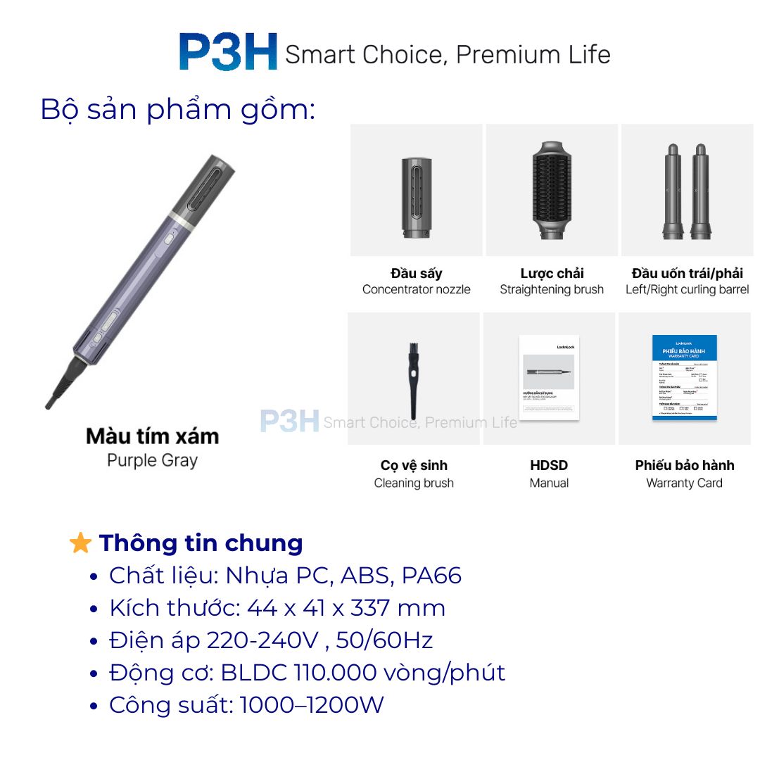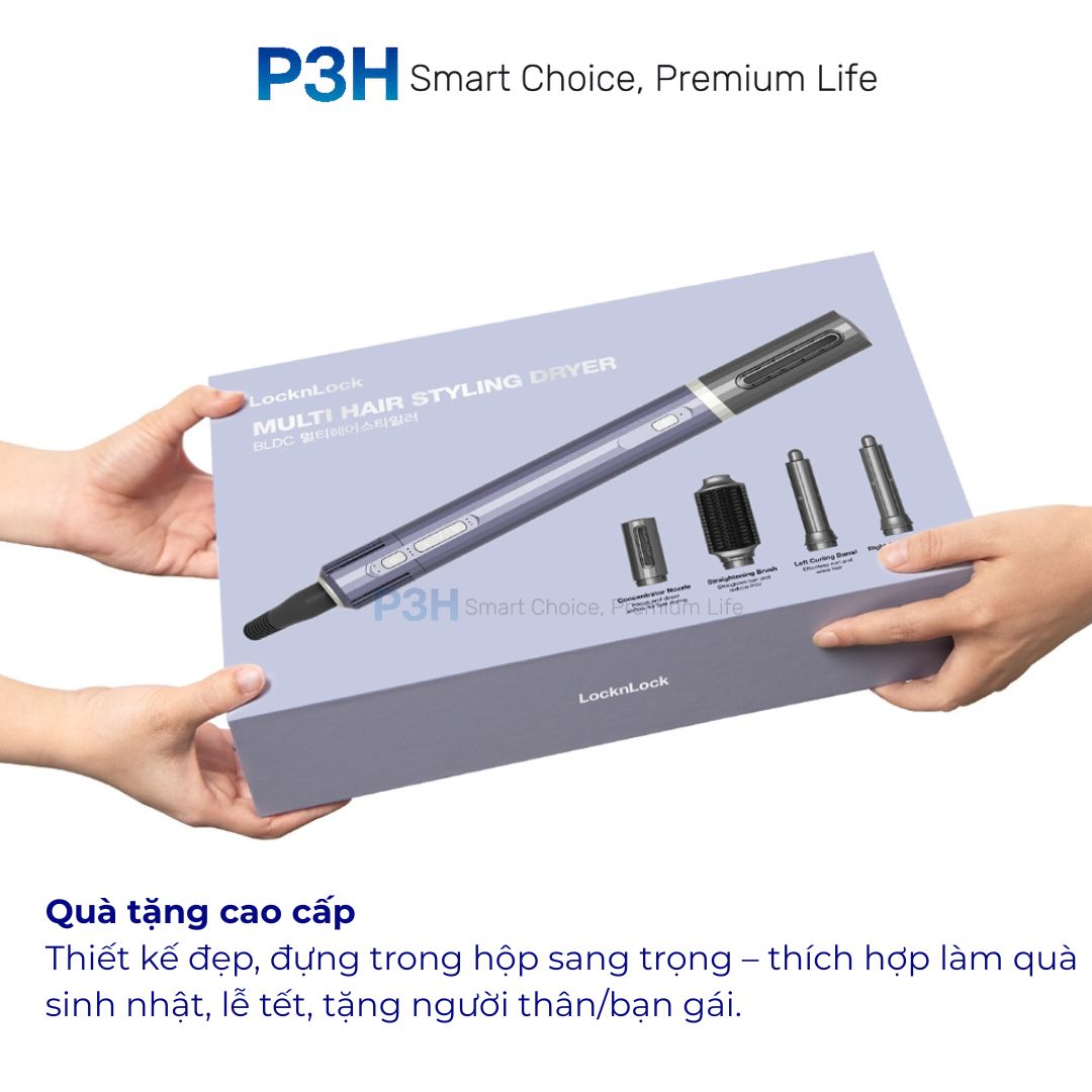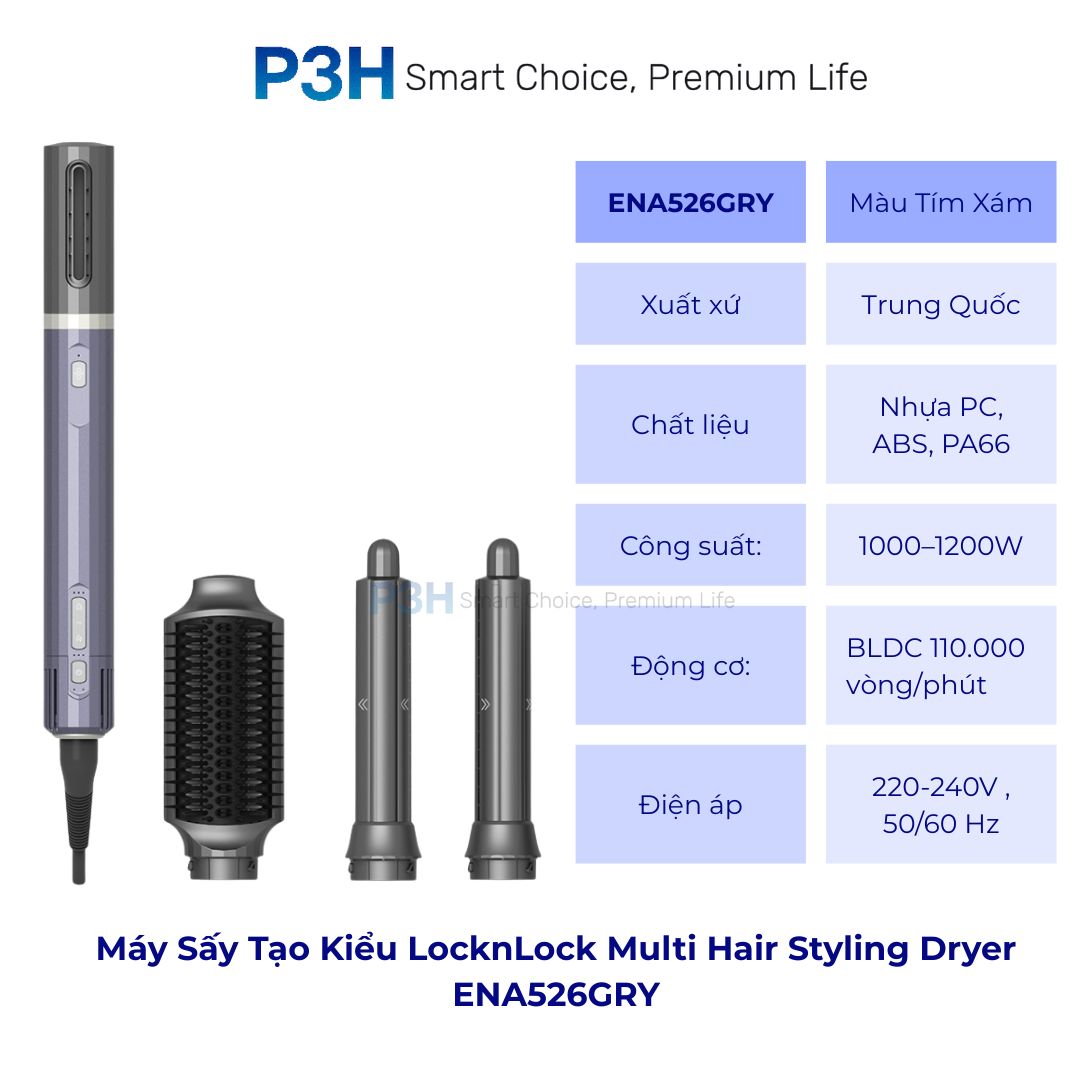 Máy Sấy Tạo Kiểu LocknLock Multi Hair Styling Dryer ENA526GRY – 4 Đầu Sấy Đa Năng, Công Nghệ Ion Âm P3H
