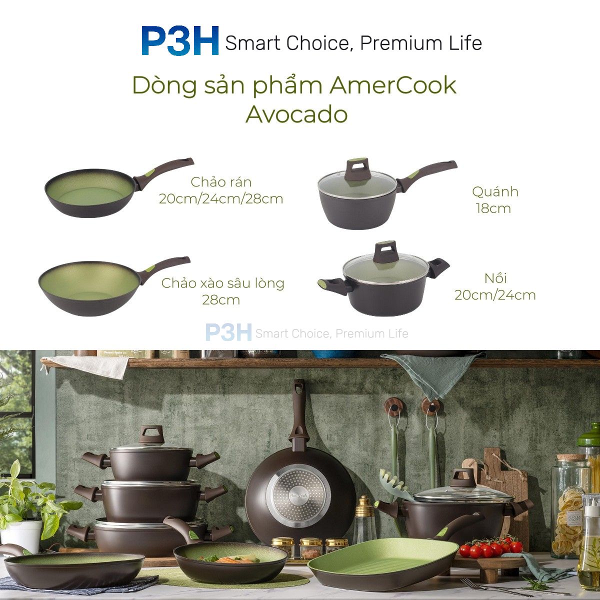Nồi chảo chống dính nhôm rèn AMERCOOK AVOCADO chống dính vượt trội bền bỉ dùng được mọi loại bếp P3H