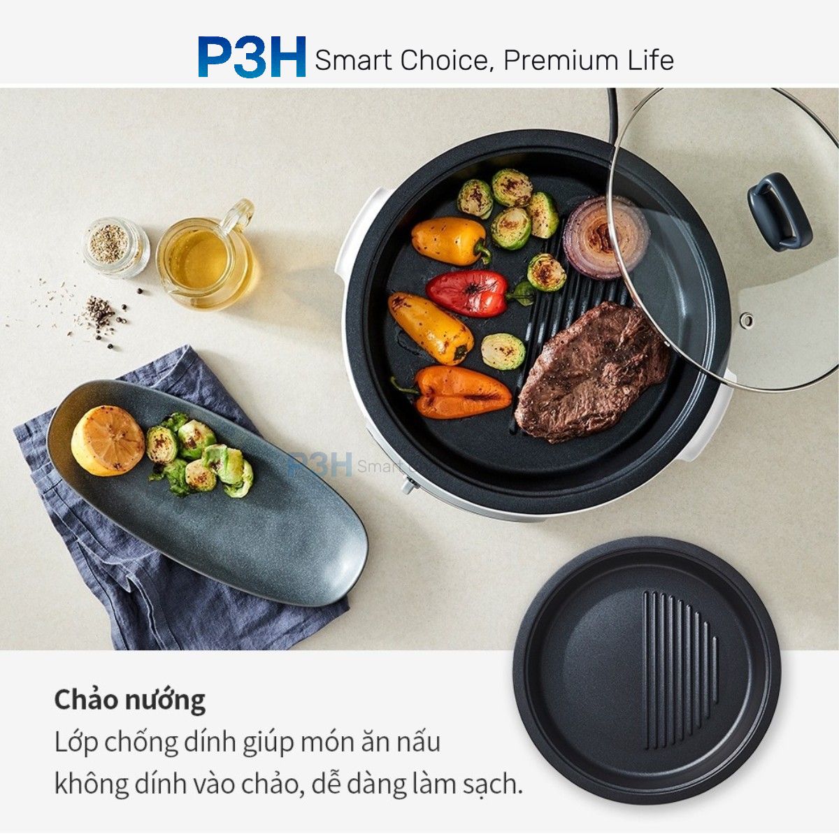 Chảo nướng chống dính 26cm – Hạn chế bám dính thực phẩm, dễ dàng vệ sinh sau khi dùng.