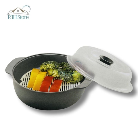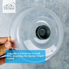 - Phần nắp có lổ thoát hơi và có thể được dùng riêng như nắp đậy trong lò vi sóng.