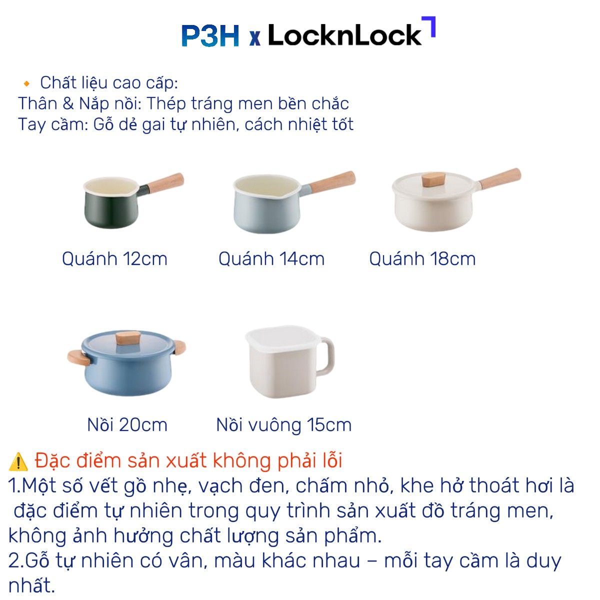 Một số vết gồ nhẹ, vạch đen, chấm nhỏ, khe hở thoát hơi là đặc điểm tự nhiên trong quy trình sản xuất đồ tráng men, không ảnh hưởng chất lượng sản phẩm.