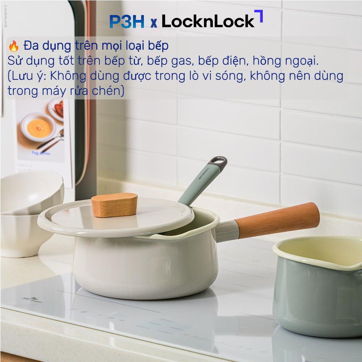 Nồi Tráng Men Lock&Lock Suit Mellow – Thiết Kế Tối Giản, nhỏ gọn nhiều kích cỡ dùng được bếp từ P3H