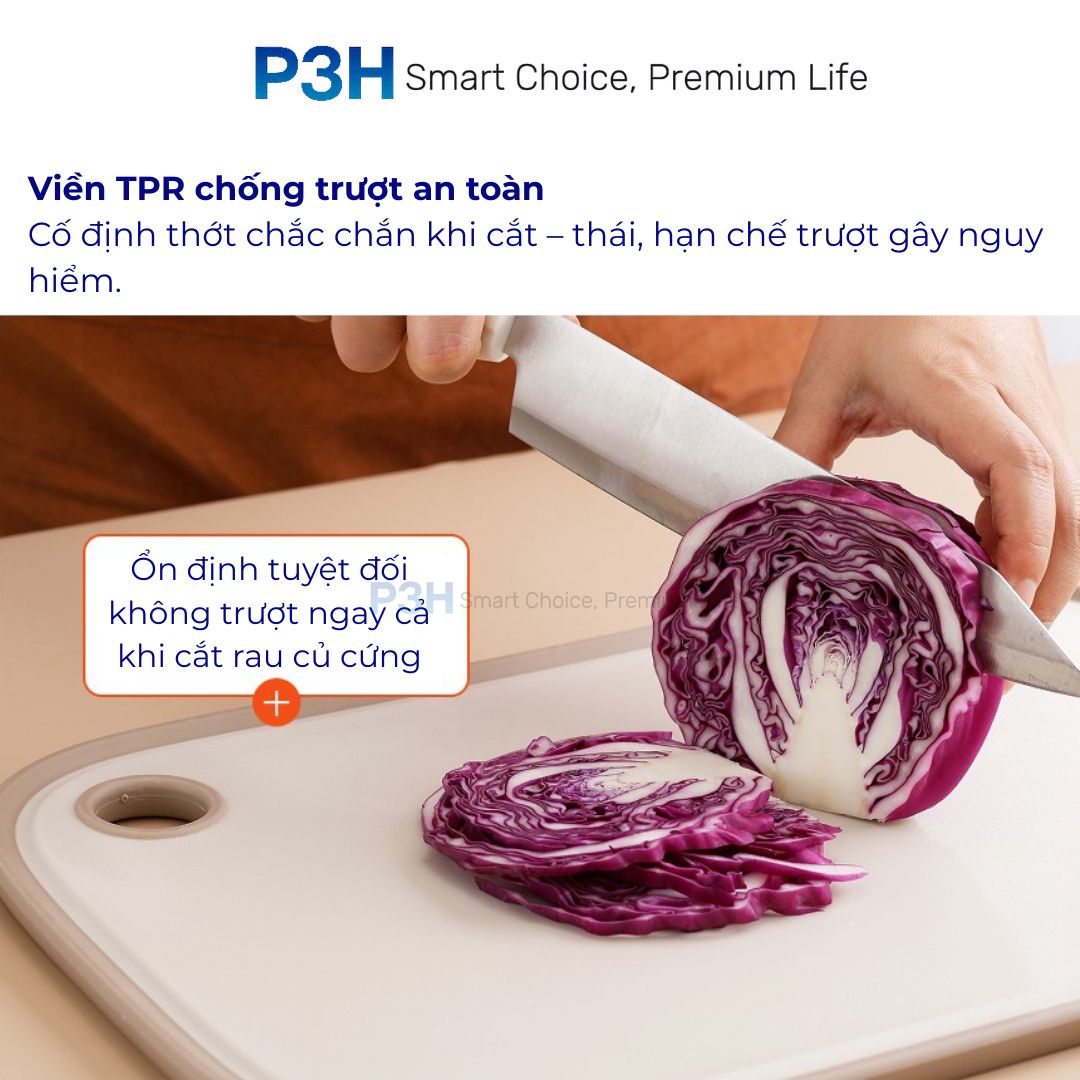 Cố định thớt chắc chắn khi cắt – thái, hạn chế trượt gây nguy hiểm.