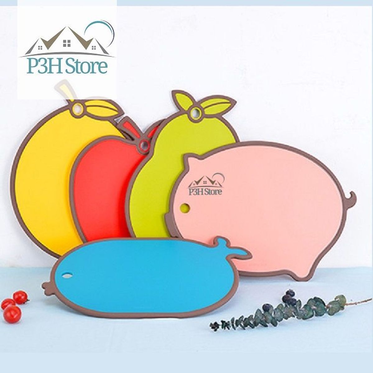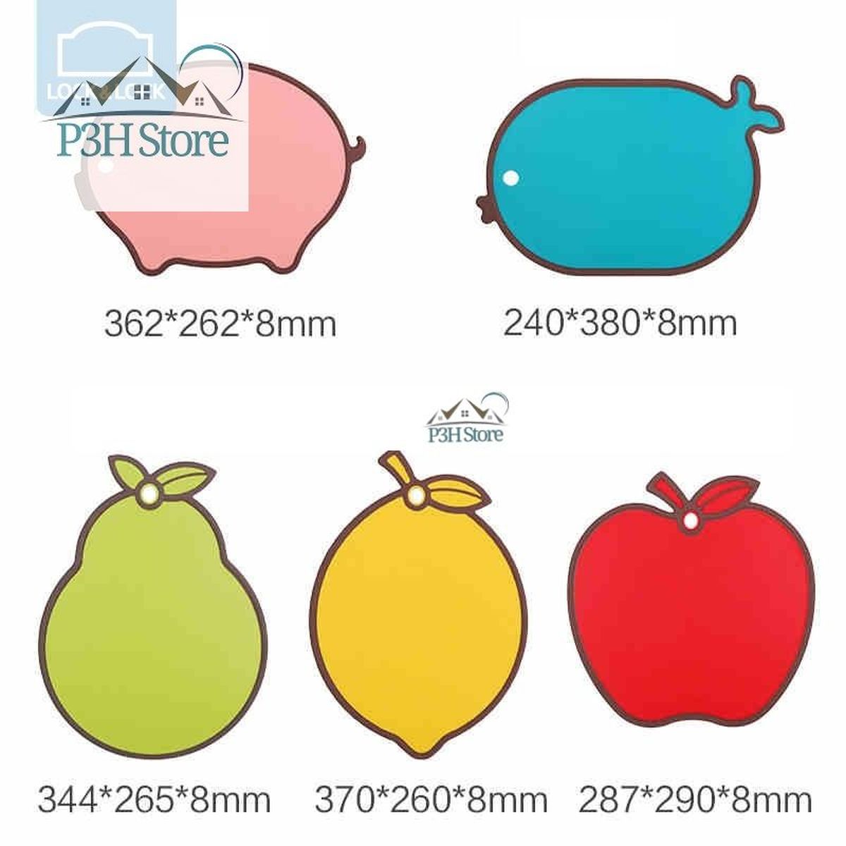Thớt gồm nhiều mẫu : cá heo , trái lê , trái chanh , cá hồng , táo đỏ.